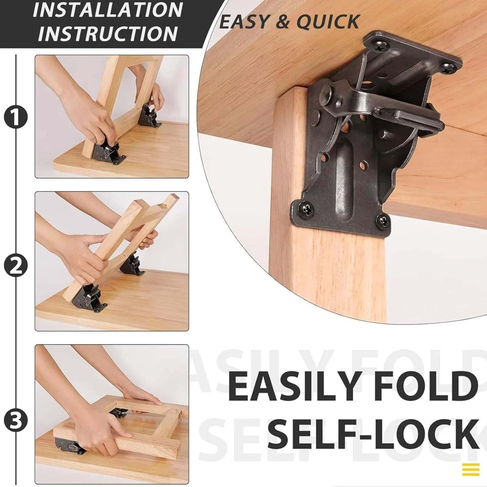 Our Our products features a robust steel plate and a reliable spring lock that ensure extra stability. No more rusty hinges or wobbly furniture. Perfect for any project that requires durability and functionality.